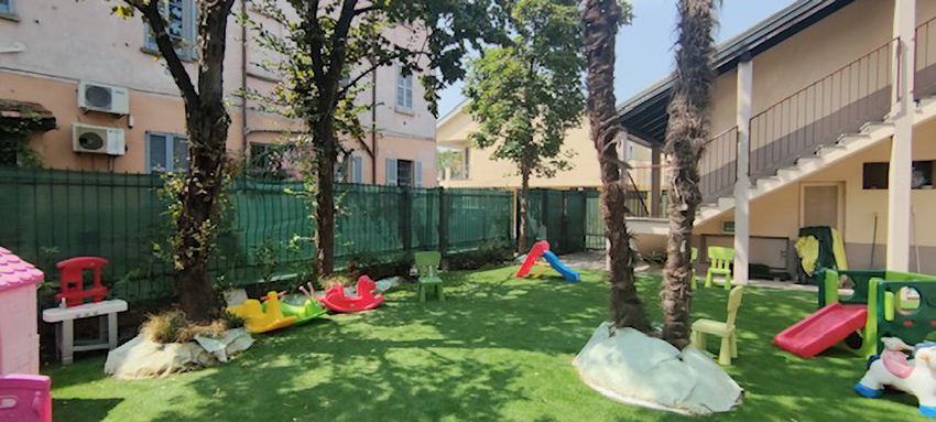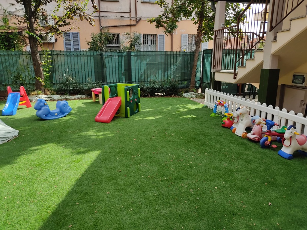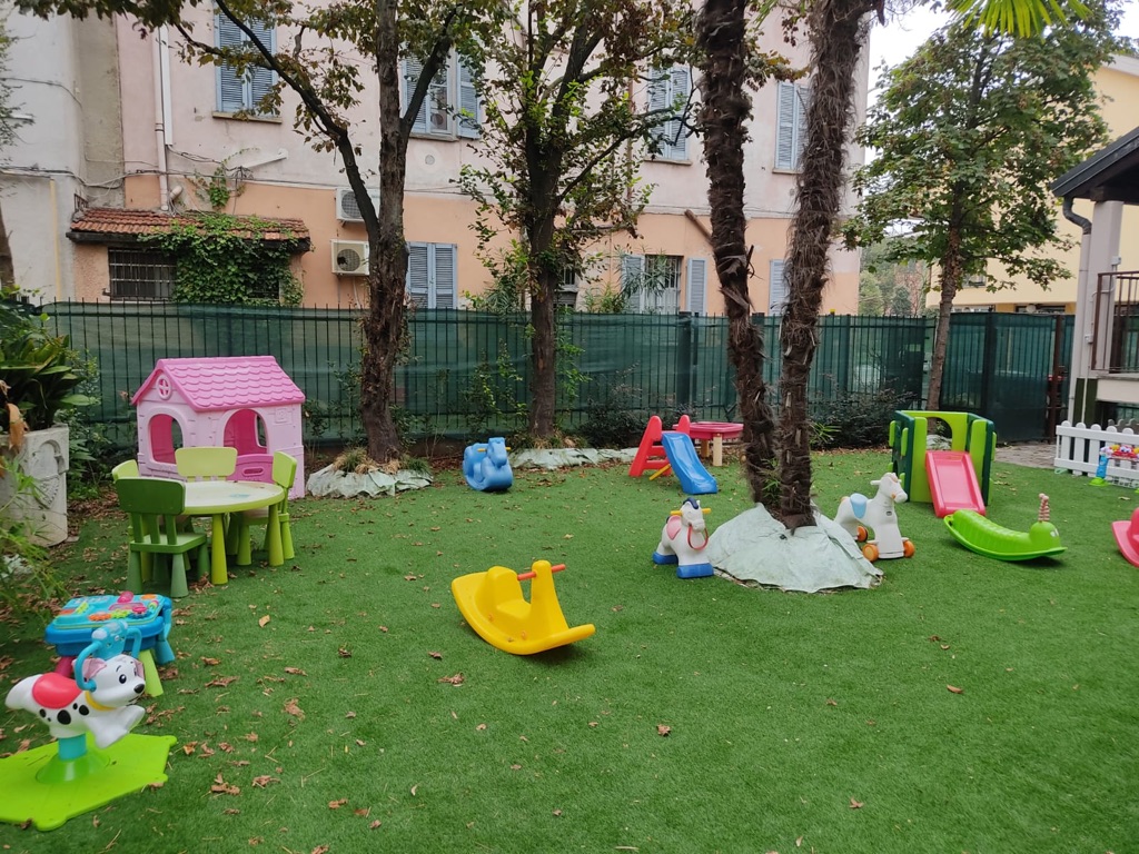 L’asilo nido gode di giardino attrezzato a disposizione dei bambini.
